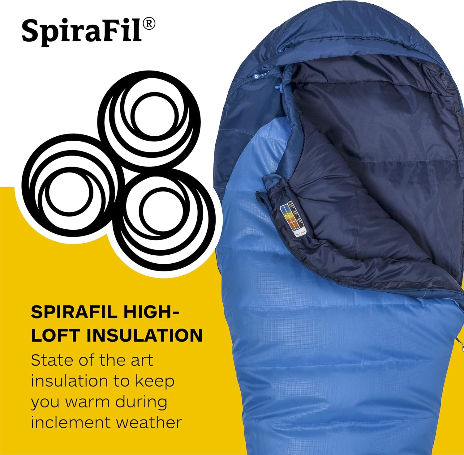 Stay warm and cozy all night long with the 15-degree Fahrenheit temperature rating and high-quality SpiraFil high loft insulation, providing exceptional warmth and comfort even in chilly conditions. The synthetic insulation is water-resistant, ensuring you stay dry and comfortable throughout the night.